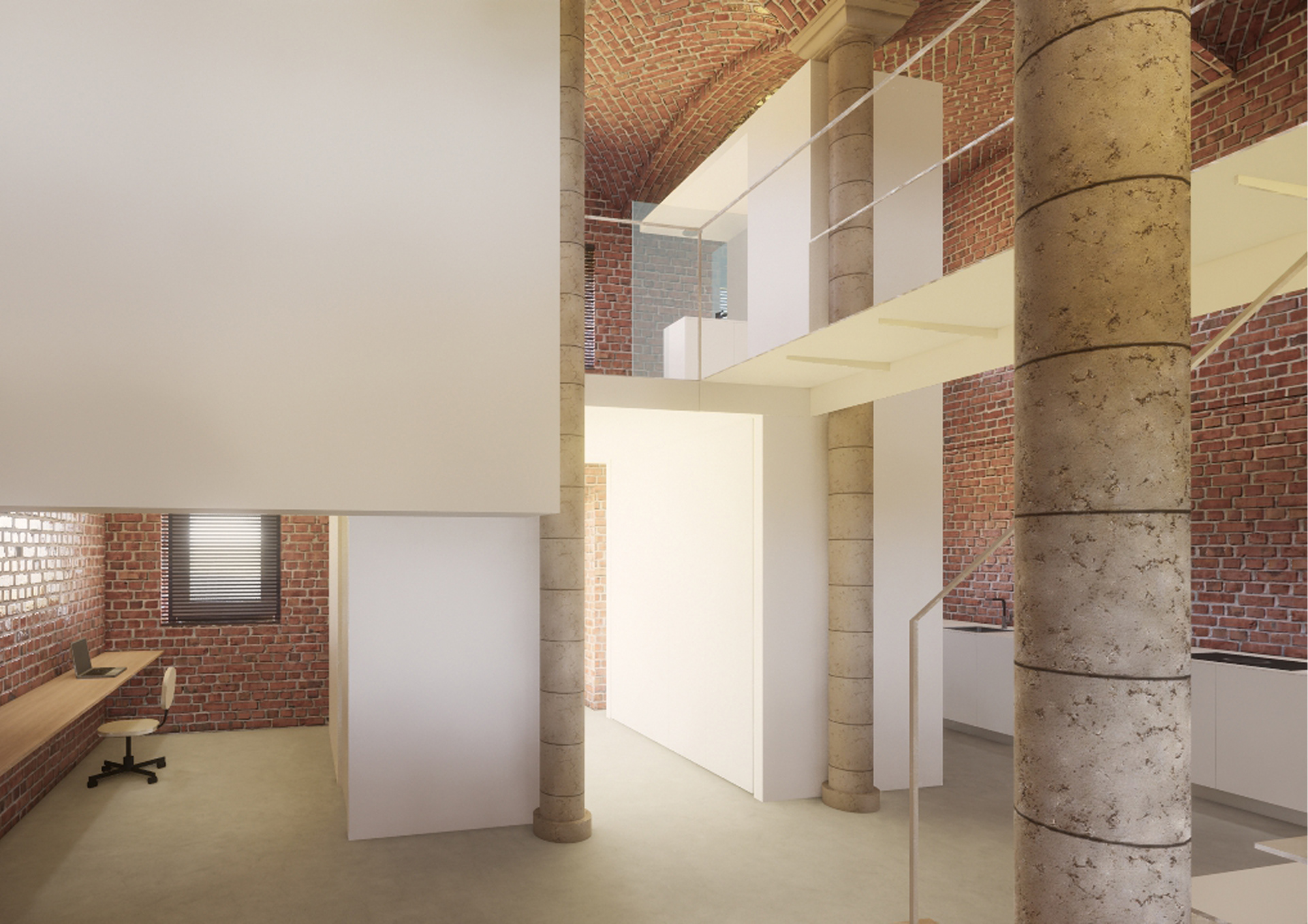 De vierkantshoeve ontvouwt zich als een serene compositie in een U - vorm, waar rust en eenvoud centraal staan. Alle functies zijn vertaald naar afzonderlijke volumes, verbonden door een trap en passerel. De trap en de passerel vormen de ruggengraat die niet alleen circulatie bieden, maar ook de ruimte vormgeven en de verschillende functies verbinden. Deze verbindingen, uitgevoerd in natuurlijke en rustgevende materialen, harmoniseren perfect met de omgeving. Lichte tinten, materialen en authentieke texturen versterken de dialoog tussen oud en nieuw, waardoor het authentieke karakter van het pand in elke hoek voelbaar, zichtbaar en aanwezig blijft. Hierdoor straalt de hoeve sereniteit en eenvoud uit. Hier wordt het oorspronkelijke materiaal niet enkel gezien, maar beleefd. De hoeve biedt een toevluchtsoord, een plek zonder afleiding, waar harmonie, tijdloosheid en puurheid samenkomen in een doordachte architecturale balans.